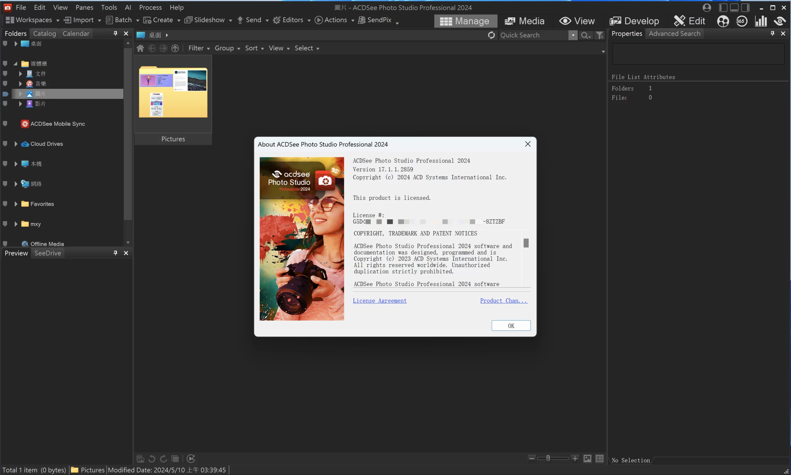 - 数字资产管理:ACDSee 2024提供了强大的数字资产管理功能,包括组织、分类、搜索和共享。用户无需上传或导入图像,软件中的文件夹和文件直接反映硬盘上的实际文件。AI关键字功能能够自动为照片添加关键字,从而简化了搜索和手动分配关键字的流程。