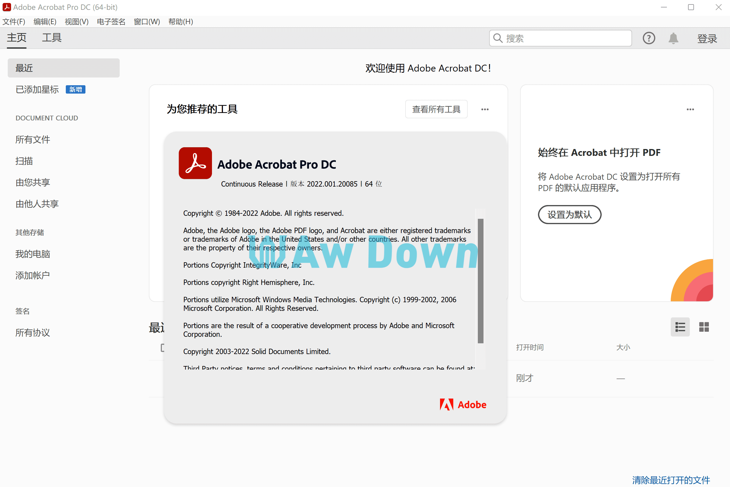 - 可搭配 Box 和 OneDrive 协同:当您在 Acrobat DC 中作业时,现在可以存取及储存 Box 或 Microsoft OneDrive 账户中的文件了。