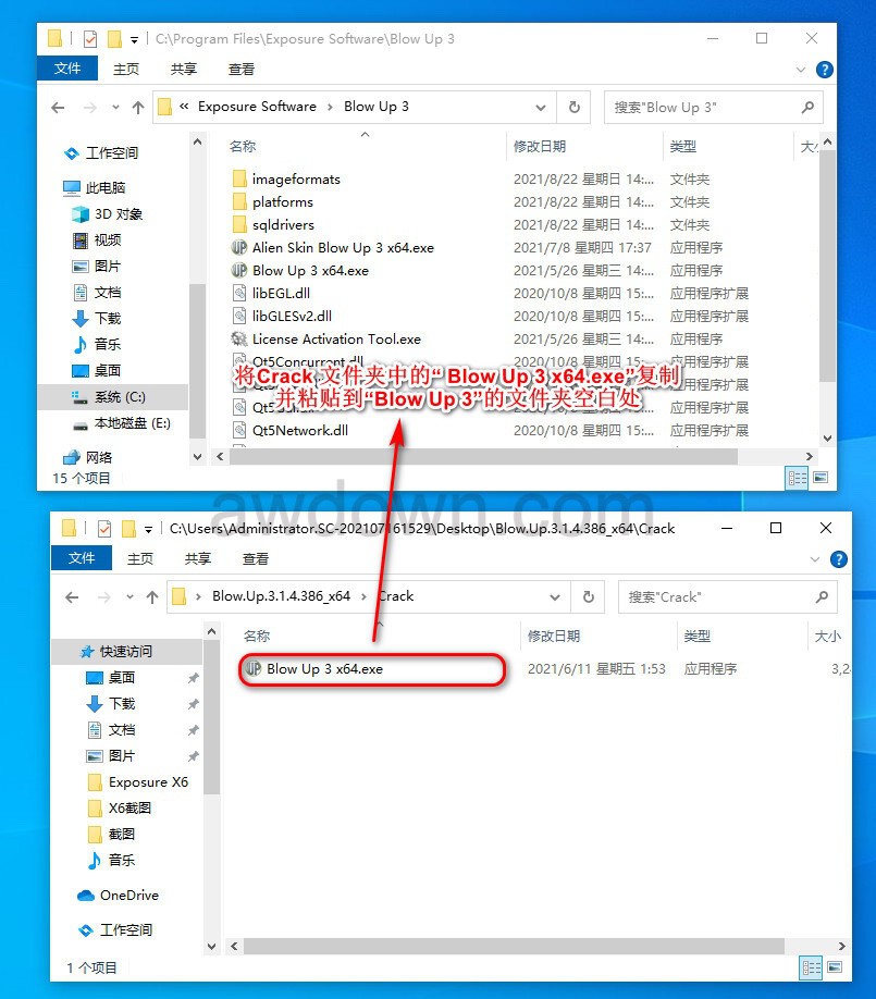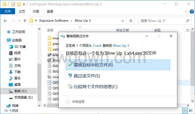 9将Crack 文件夹中的“ Blow Up 3 x64.exe”复制并粘贴到“Blow Up 3”的文件夹空白处;