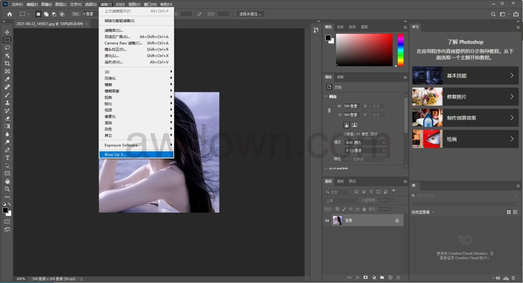 11完成后,打开photoshop,“滤镜”目录下就会有“Blow Up 3”,我们就可以开始使用了!