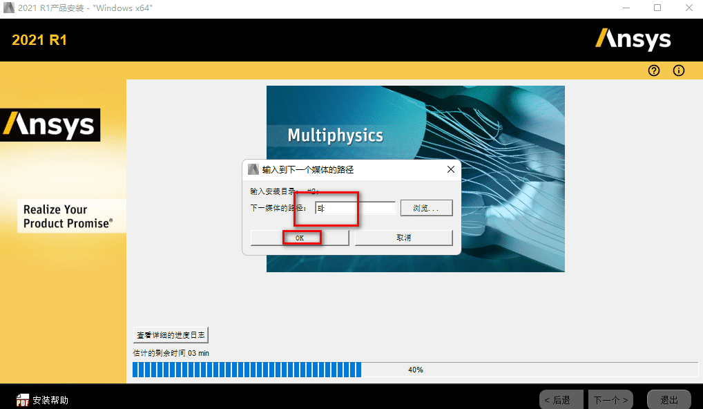 13、当安装进度到40%,打开安装包解压后的【ANSYS2021.R1(64bit)】文件夹,鼠标右击【ANSYS2021R1_WINX64_Disk2】选择【装载】