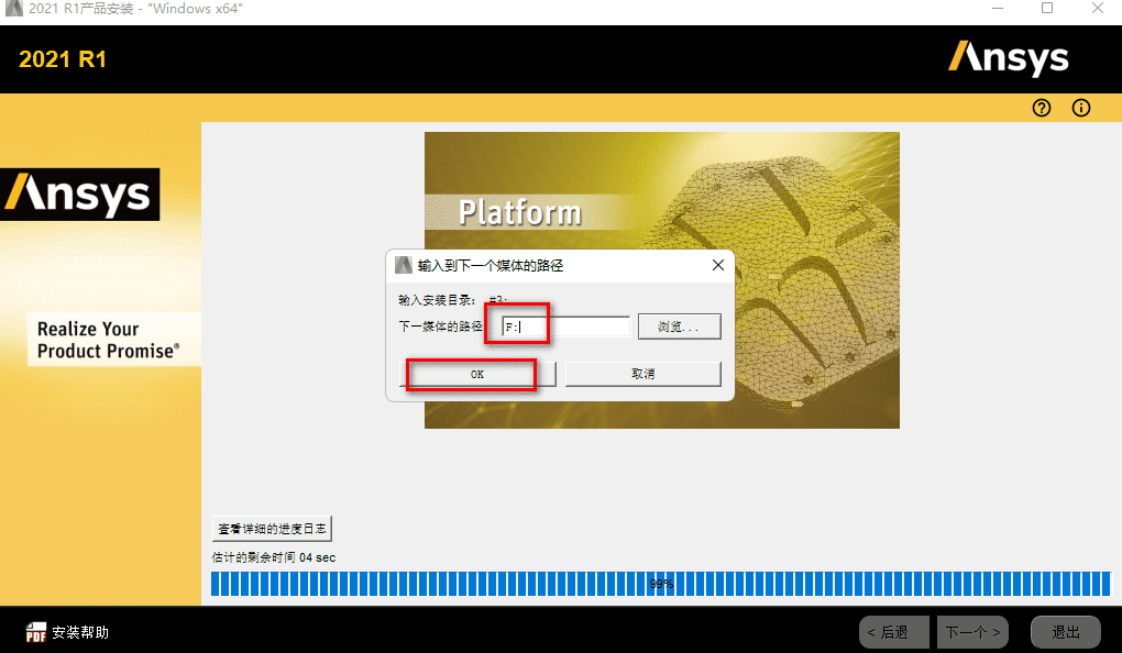 19、回到软件安装界面,输入【F】,点击【OK】。