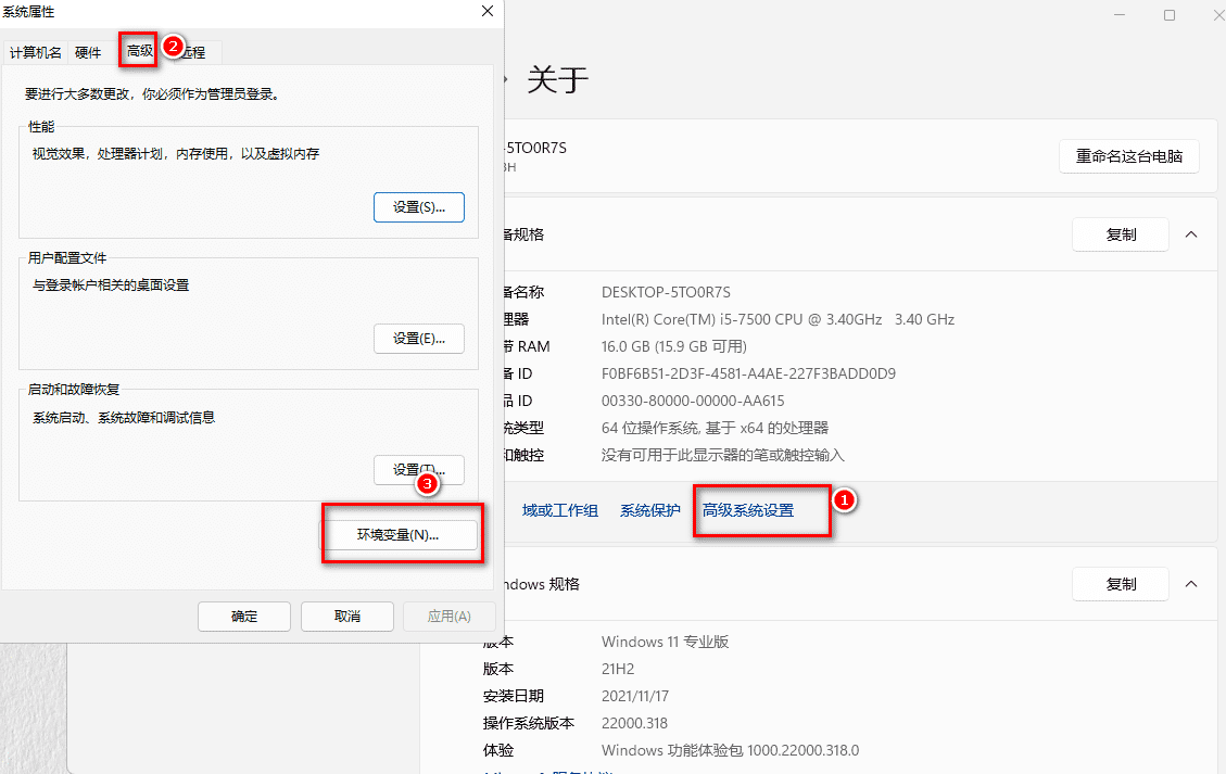 27、鼠标右击桌面【此电脑】,选择【属性】,点击【高级系统设置】,点击【高级】,点击【环境变量】