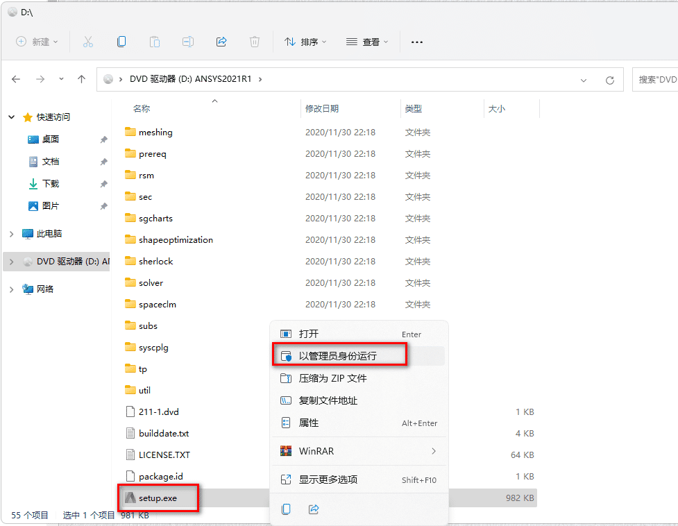 3、进入装载后的文件夹,鼠标右击【setup】选择【以管理员身份运行】
