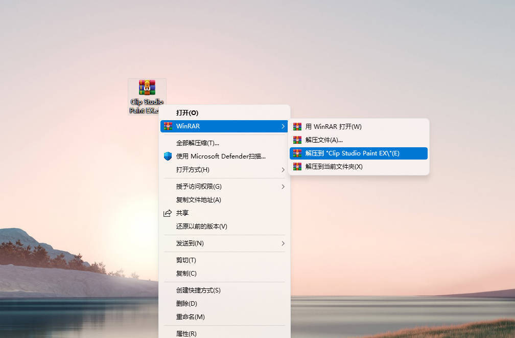 1、右击压缩包【Clip Studio Paint EX】,选择解压到【Clip Studio Paint EX】并打开