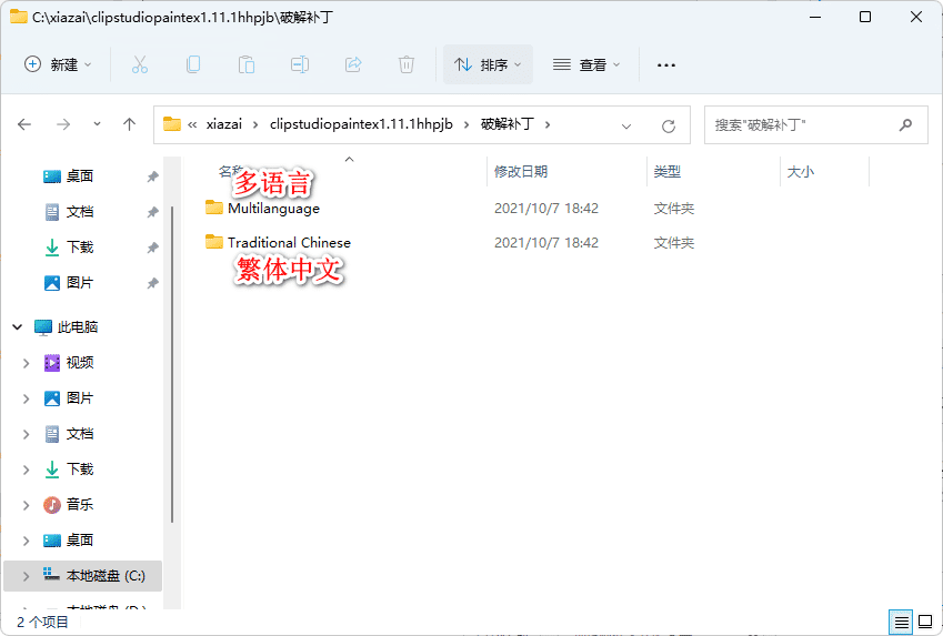 10、打开【破解补丁】文件夹,选择你需要的语言类型