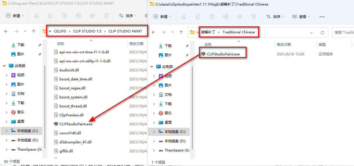 11、将【CLIPStudioPaint.exe】复制到【C:\Program Files\CELSYS\CLIP STUDIO 1.5\CLIP STUDIO PAINT】(默认的安装位置)