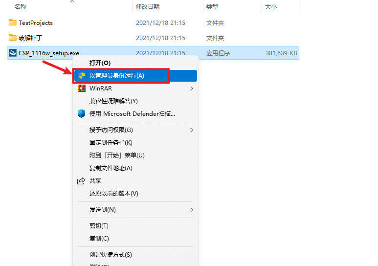 2、打开【主程序】文件夹,鼠标右击【CSP_1116w_setup.exe】选择【以管理员身份运行】