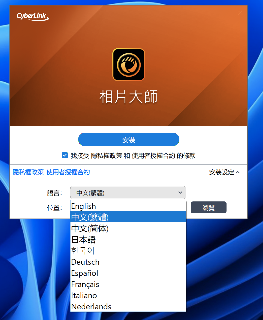 2、双击安装主程式,支持以下语言。