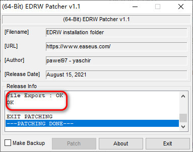 11、运行安装目录下的”(64-Bit) EDRW Patcher v1.1.exe”,点击”patch”,出现图三提示表示已完成;