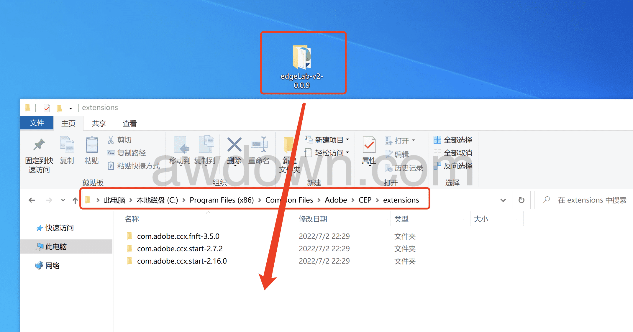 1、将解压的文件放到这个目录下即可,C:\Program Files\Common Files\Adobe\CEP\extensions