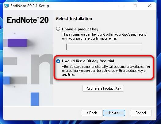 3、勾选”I would like a 30-day free trial”,点击”Next”;