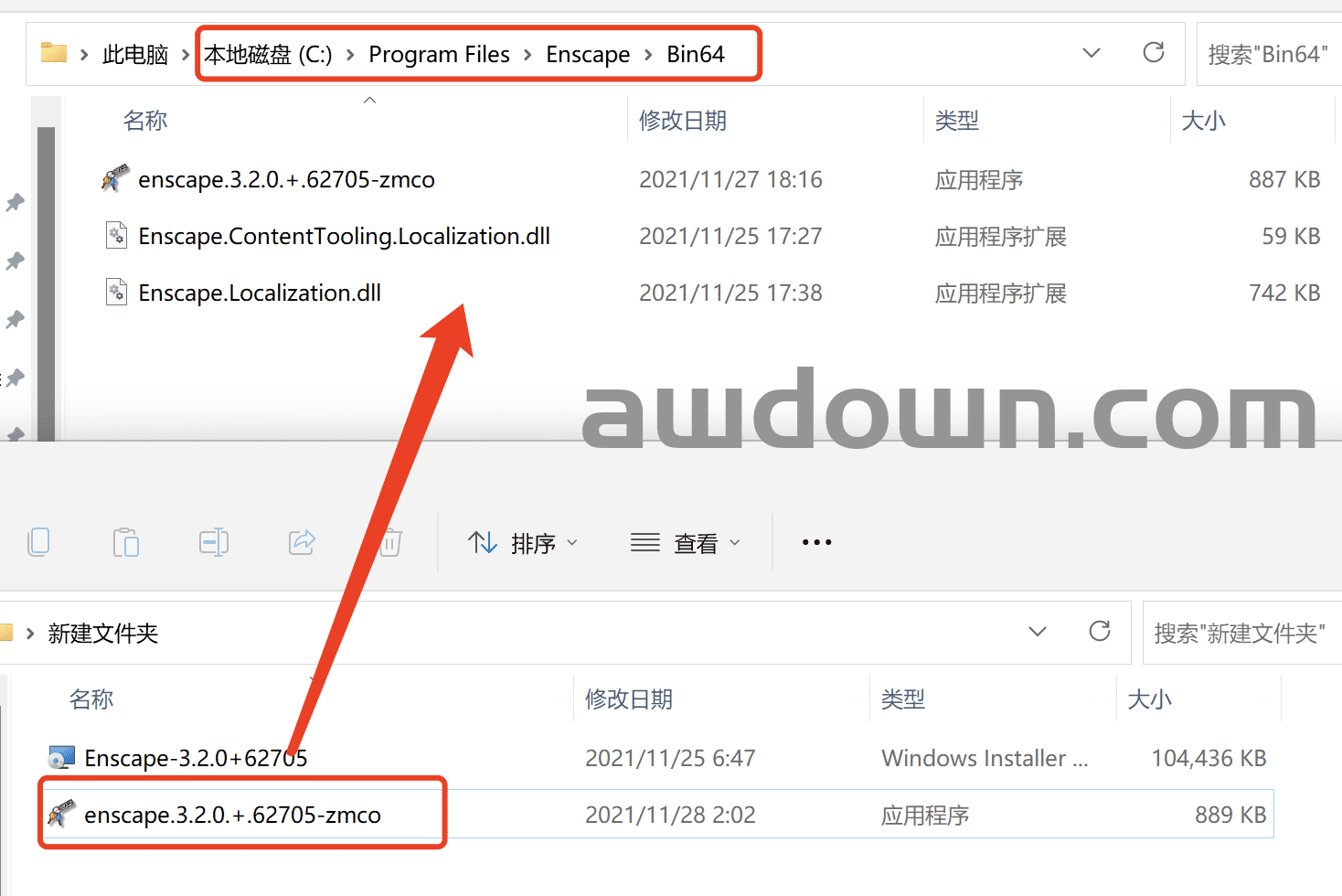 6、将补丁文件enscape.3.2.0.+.62705-zmco.exe 复制到文件夹 C:\Program Files\Enscape\Bin64 下运行,单击右下角的Patch即可 ,至此,大功告成。