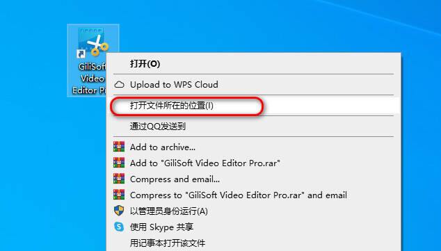 1、安装后在桌面找到“GiliSoft Video Editor Pro”右键“打开文件所在的位置”;