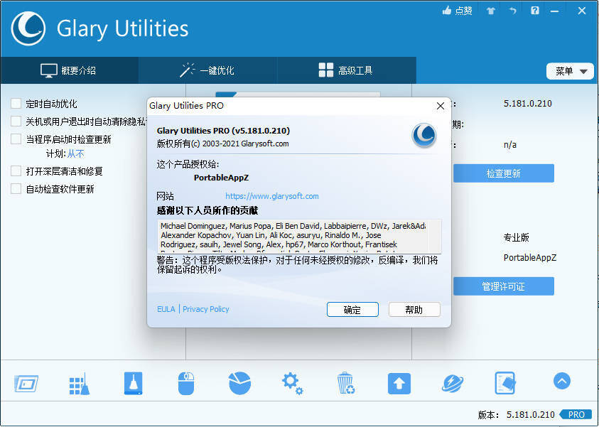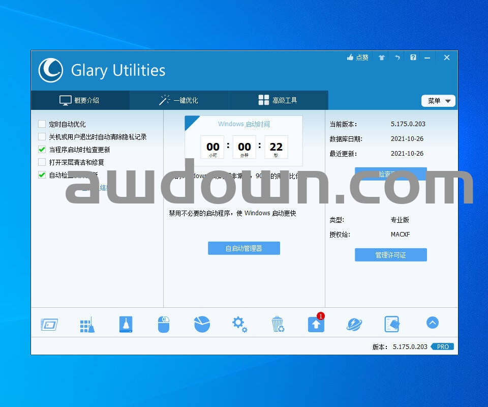 Glary Utilities Pro是一组系统工具和实用程序,用于修复、加速、维护和保护您的 PC。它允许您清理常见的系统垃圾文件,以及无效的注册表项和 Internet 痕迹(有一个插件支持 45 多个外部程序)。您还可以管理和删除浏览器加载项、分析磁盘空间使用情况并查找重复文件。
