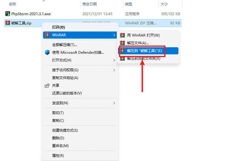 11返回安装包,解压破解工具压缩包并打开
