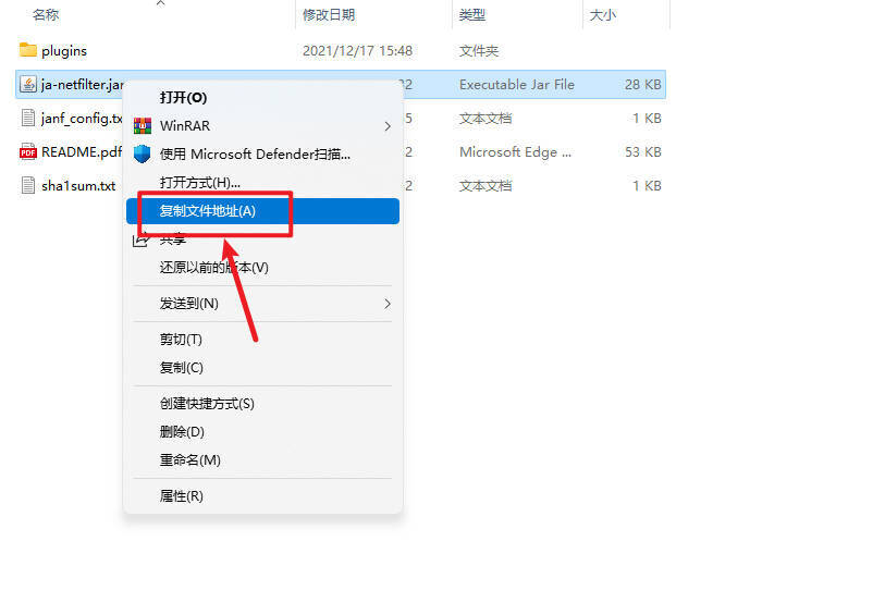 16打开ja-netfilter文件夹,找到ja-netfilter.jar文件,右键复制文件路径。