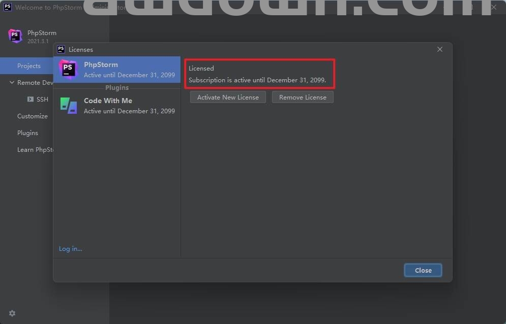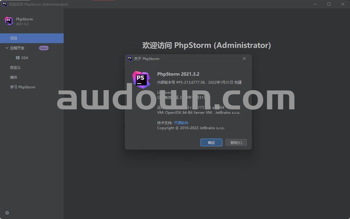 20我们重新打开 PhpStorm 2021软件,即可看到激活成功!