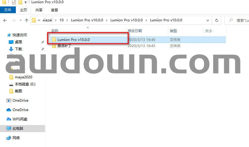 12、打开安装包解压后的Lumion Pro v10.0.0文件夹,双击打开激活补丁文件夹