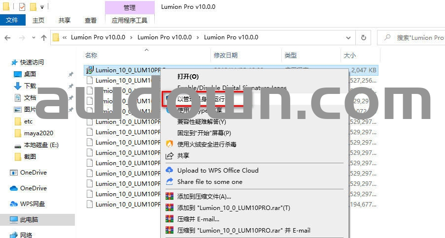 3、鼠标右击Lumion_10_0_LUM10PRO.exe选择以管理员身份运行