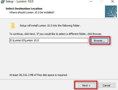 4、点击Browse可更改安装位置(建议不要安装在C盘,可以在D盘或其它磁盘下新建一个“Lumion10”文件夹,注:安装路径中不要有中文),点击Next