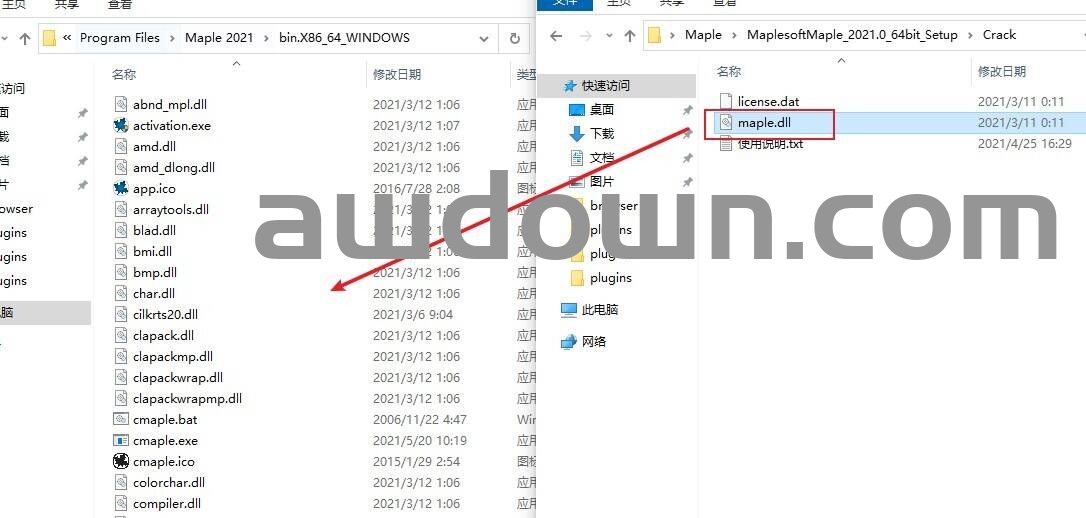 10、将maple.dll文件复制到目录 C:\Program Files\Maple 2021\bin.X86_64_WINDOWS 替换文件