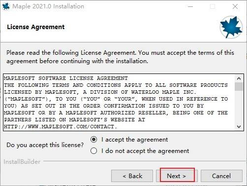 2、首先双击文件Maple2021.0.exe开始安装软件
