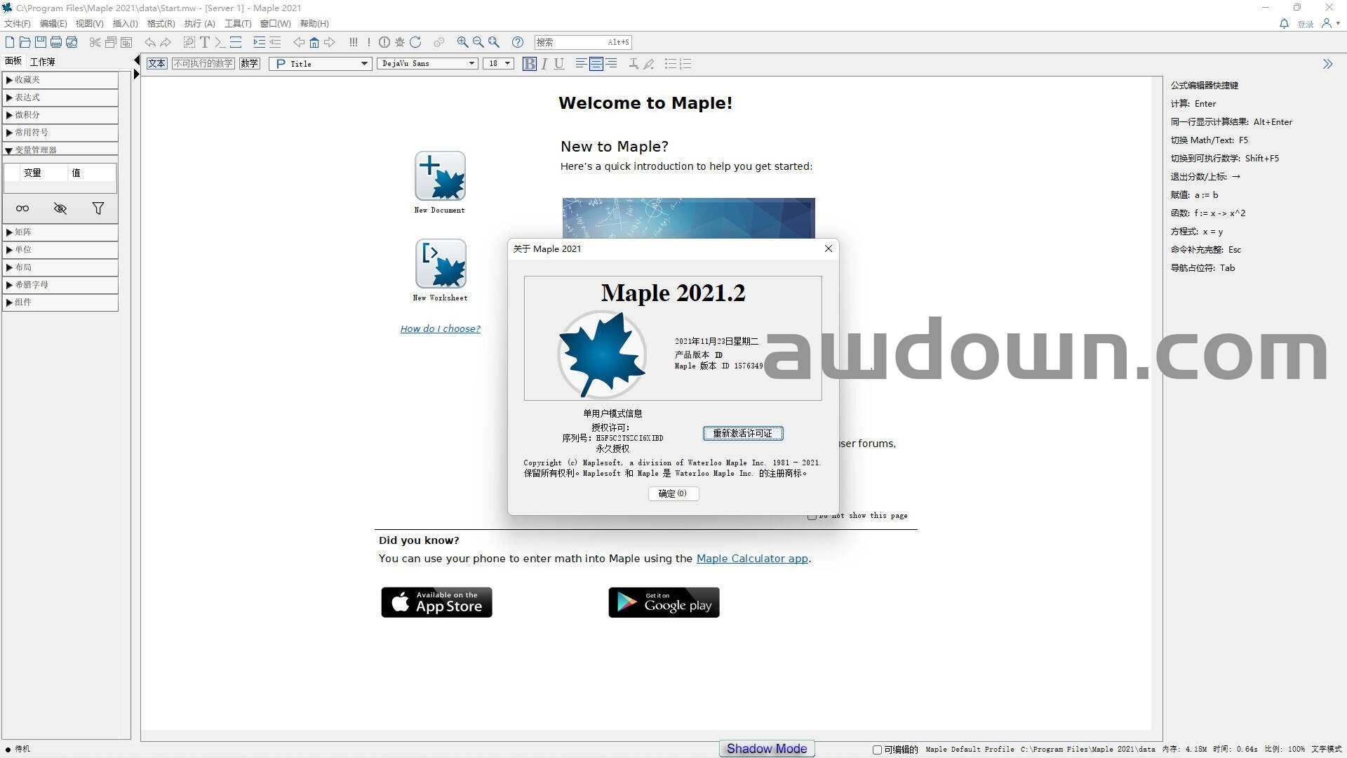 Maplesoft Maple 2021是一款功能强大的数学软件,结合了世界上最强大的数学引擎和界面,使得分析,探索,可视化和解决数学问题变得非常容易。包含了与Maple交互方式的实质性改进,所以无论您使用Maple为何,您都可以从此版本中受益。新版本让数学问题的分析、探索、可视化及求解变得更为简便。无论使用Maple软件中的何种功能以及何种使用方式,所有用户都将受益。新版本包含高级数学计算功能、可视化、专业应用领域等众多新功能,对于数学家、教育工作者、工程师和科学家非常有用。