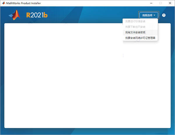 3、找到右上角的高级选项,选择“我有文件安装密钥”;
