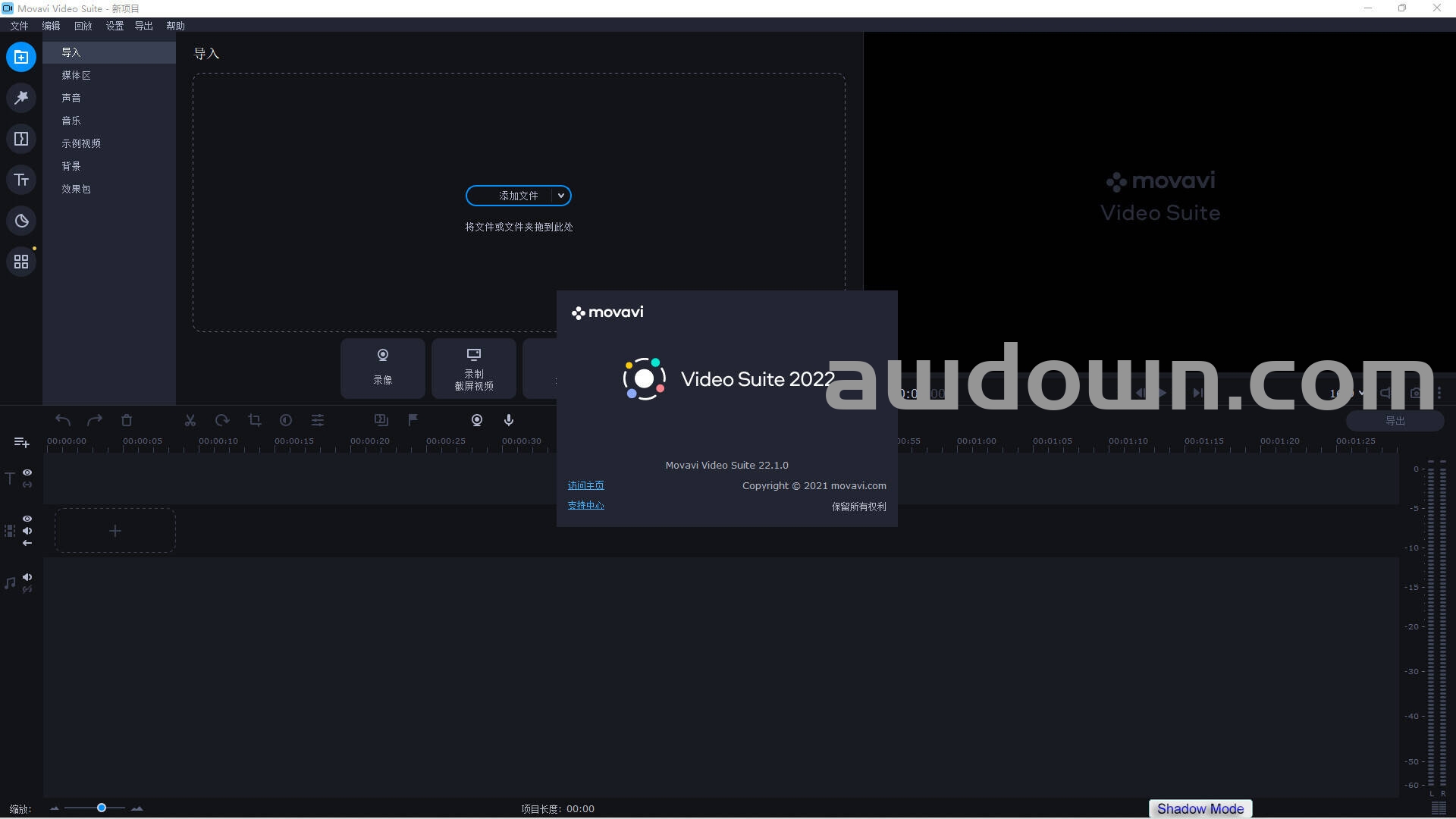 Movavi Video Suite 是一套全面的视频制作软件,除了视频编辑功能外,还具有屏幕录制、格式转换、DVD刻录、视频播放等功能,它比具有界面美观、体积小巧等优点。即使您没有相关经验,您也可以通过它快速创建专业水准的电影和幻灯片。使用 Movavi,让视频制作简单有趣!