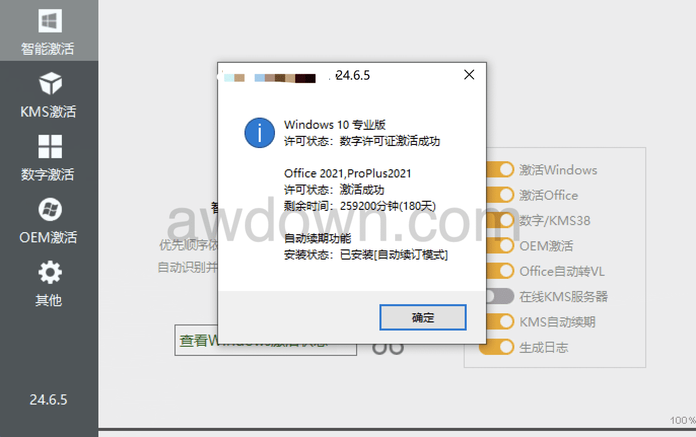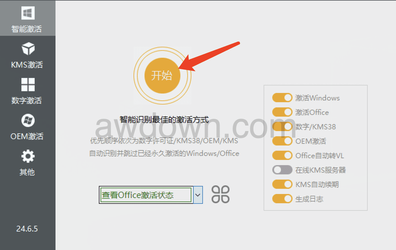 KMS是一款简洁高效的 KMS 激活工具。适用且不限于最新版本的 Windows11、Windows10、Windows8、Windows7或Office2024、Office2021及VL版本,无需联网即可一键激活,离线全自动激活软件。KMS 服务是微软公司对 Windows 以及 Office 等的批量授权服务,可以利用 KMS 激活局域网中的产品。而这款工具是利用在系统内部搭建 KMS 服务器,因此无论是 Windows 还是 Office 都可轻易进行激活。