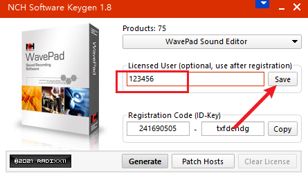 6、许可用户随意填写,点击保存,弹框显示用户名已成功写入注册表,点击确定。