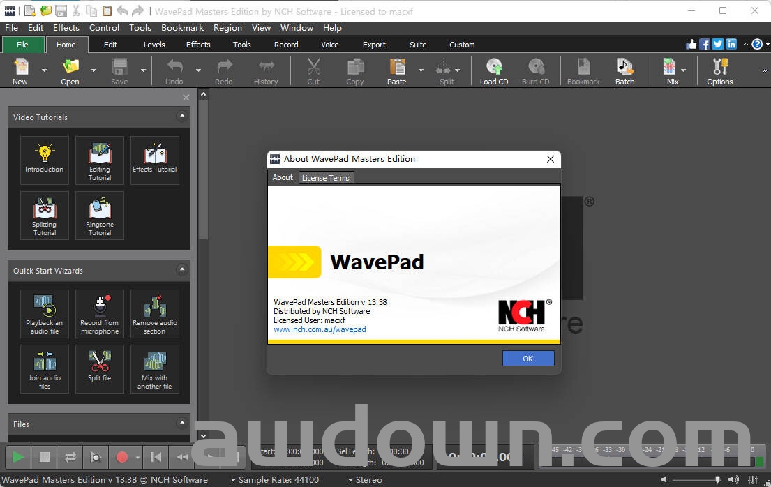 NCH WavePad音频编辑是功能强大的音频编辑器。它允许您录制和编辑音乐,声音和其他音频录音。编辑音频文件时,您可以剪切,复制和粘贴录音的部分,并且为其添加例如回声,增强和降噪的特效。 WavePad可以作为wav和mp3的编辑器,同时它也支持很多其他的视频格式,包括vox、 gsm、 wma、real音频、au、aif、flac、ogg等。