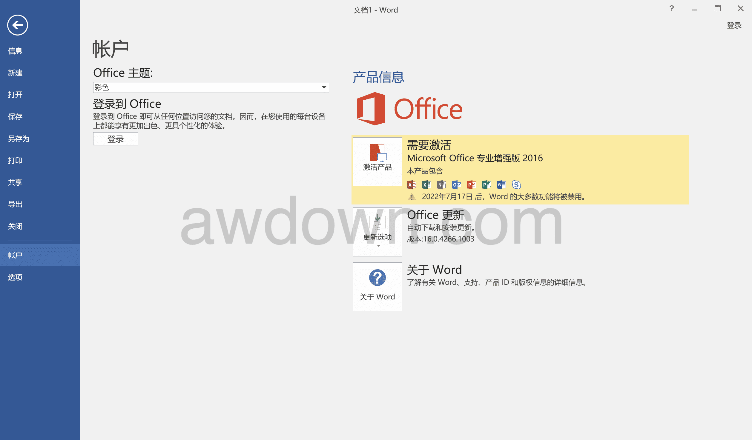 6、打开后,为未激活状态。不用慌:请使用kms工具对其进行启用:https://www.awdown.com/ms-kms.html