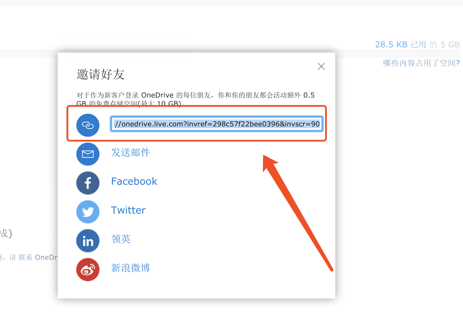 2、推荐好友注册OneDrive,用户和其好友都将获得500MB的存储空间奖励,而每个用户最多只能邀请10个好友,其最大奖励上限为5GB。