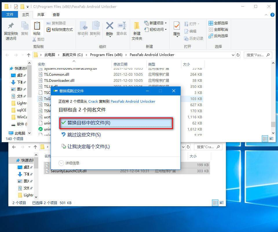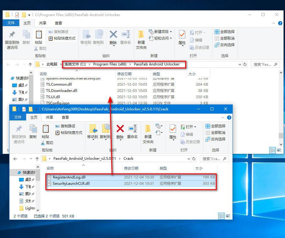 3,将文件夹下的破解补丁复制粘贴到以上目录 路径:【"C:\Program Files (x86)\PassFab Android Unlocker"】