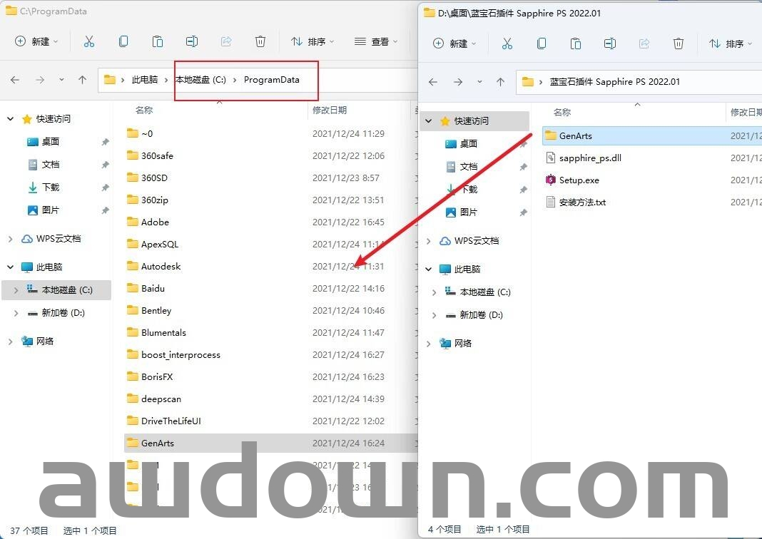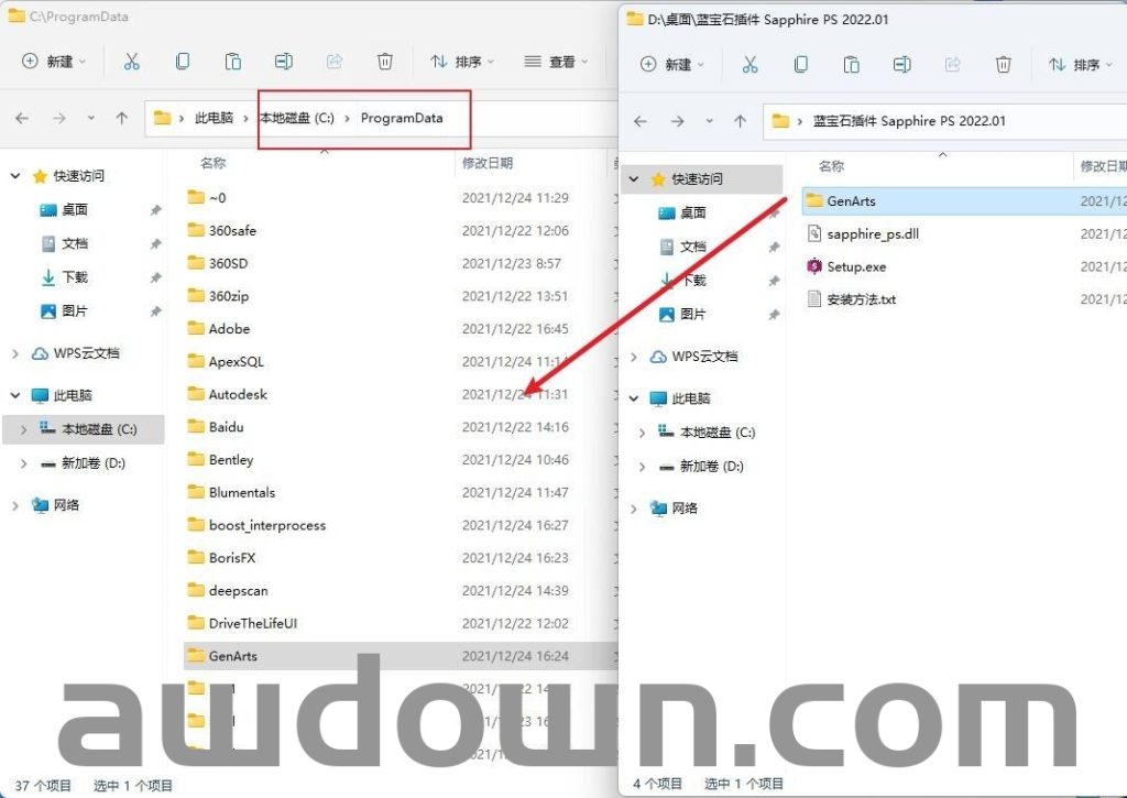 12复制GenArts文件夹到以下隐藏路径: C:\ProgramData
