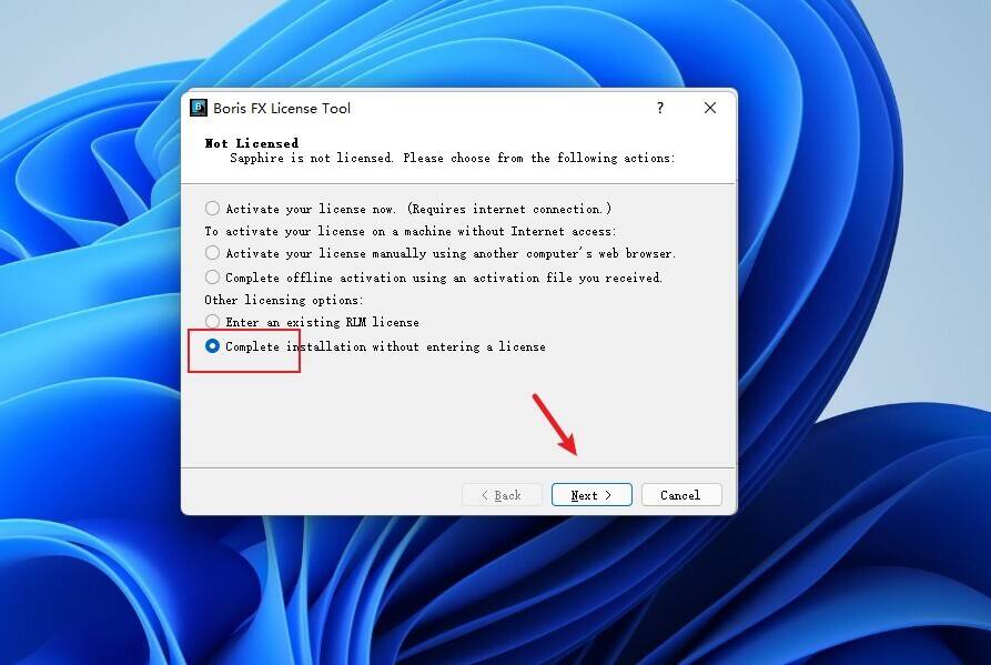 8结束选择Complete installation without….