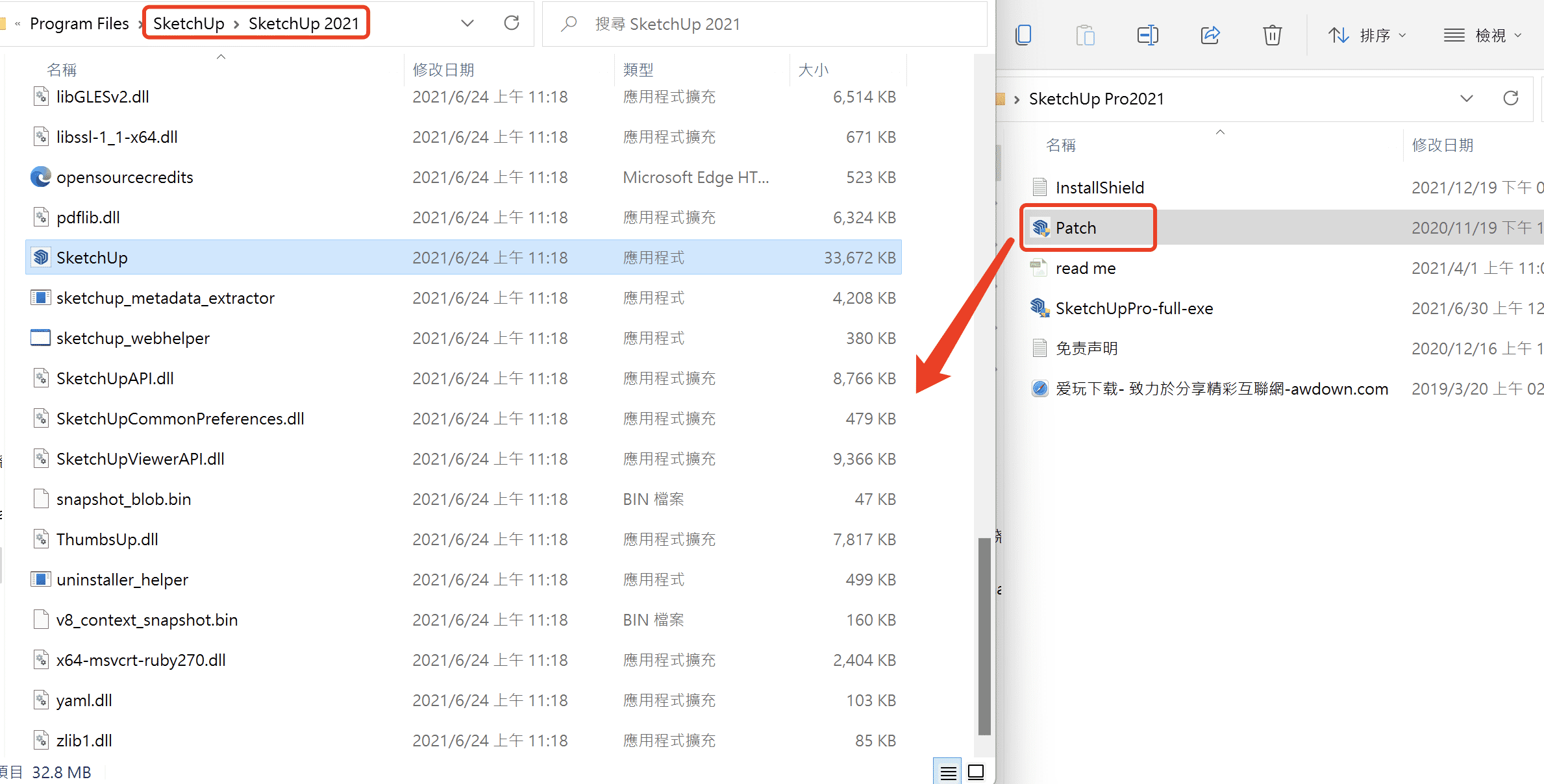 3、将patch放入源文件夹。