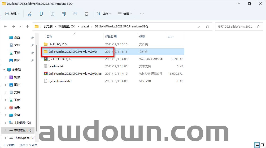 13、打开解压好的【SolidWorks.2022.SP0.Premium.DVD】文件夹