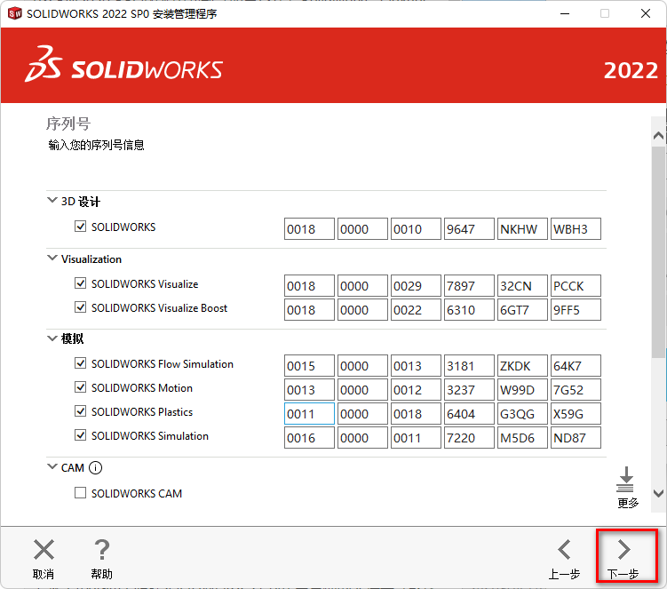 16、勾选需要安装的产品,点击【下一步】