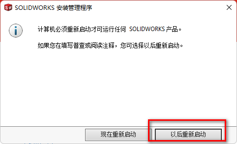 22、点击【以后重新启动】