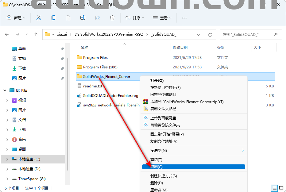 7、鼠标右击【SolidWorks_Flexnet_Server】选择【复制】