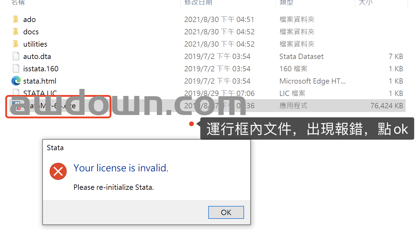 9,然后点击StataMP-64运行,弹出报错为正常,点OK即可。