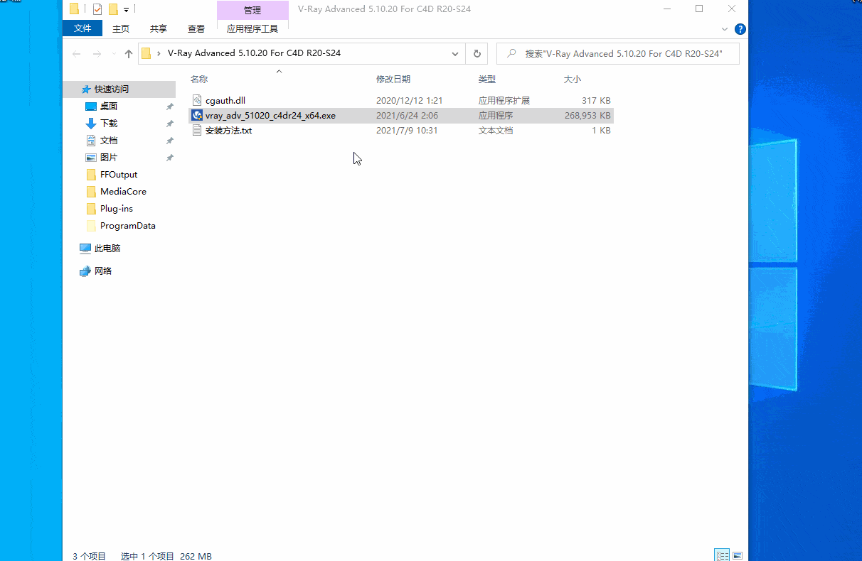 1下载完自己需要的版本好插件,小编这里选择的是vray_adv_51024_c4dr24_x64.exe程序安装