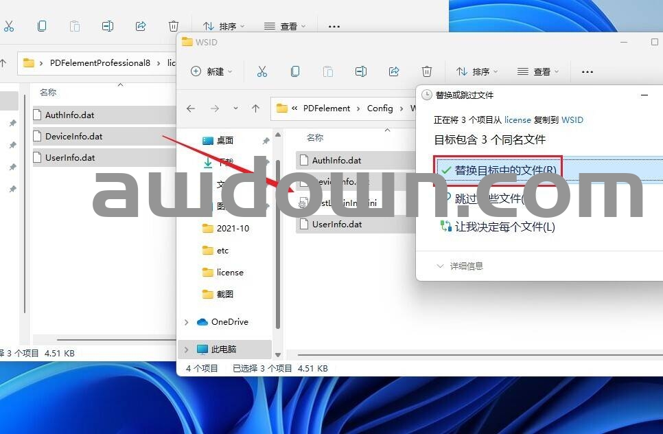 2、然后运行一次软件再关闭,最后将license文件夹内的所有文件复制到“C:\Users\%username%\AppData\Roaming\Wondershare\PDFelement\Config\WSID”