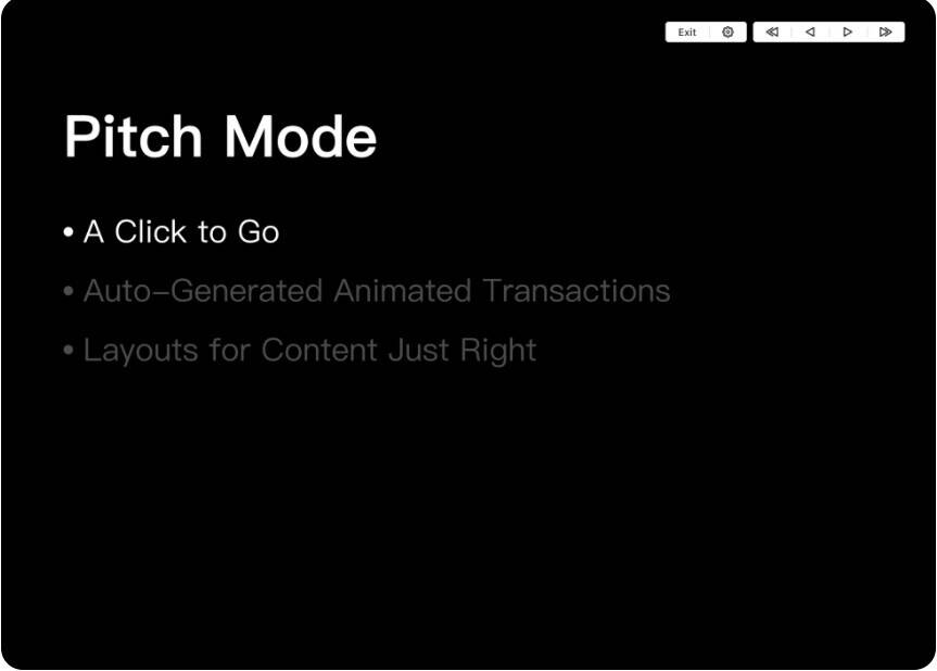 特色:单击以像幻灯片一样呈现您的思维导图。音高模式为您的思维导图提供了平滑的过渡和布局。