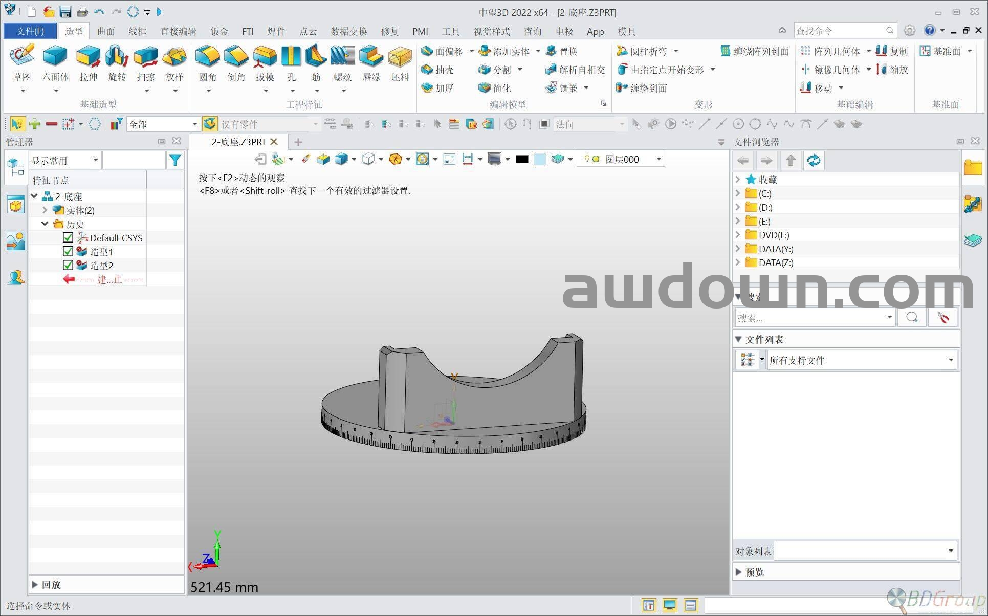 中望3D是中望公司拥有全球自主知识产权的高性价比的高端三维CAD/CAM一体化软件产品,为客户提供了从入门级的产品设计、模具设计、CAM加工的一体化解决方案。拥有独特的Overdrive混合建模内核,支持A级曲面,支持2—5轴CAM加工。